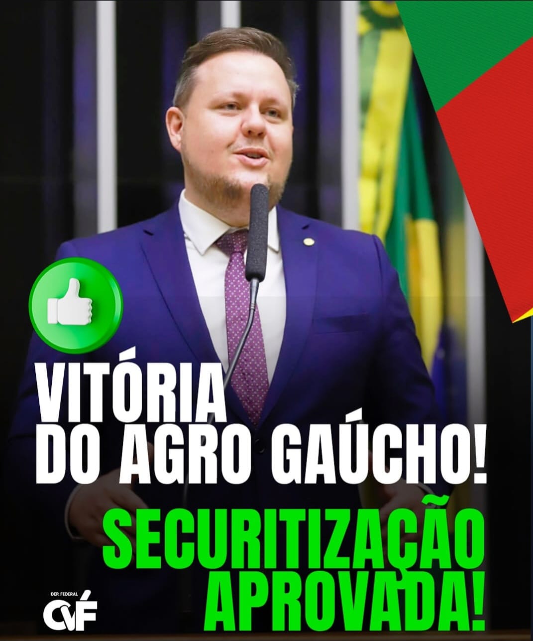 Conseguimos aprovar a securitização e agora o projeto vai ao senado. Aonde o nosso guerreiro Senador Luis Carlos Heinze, vai tocar a diante, até porque ele é autor do mesmo projeto no senado federal.