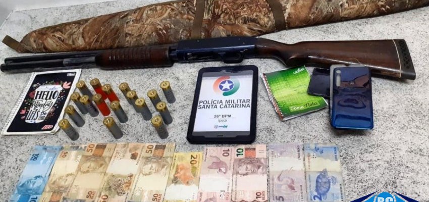 PM de Ipira apreende arma de fogo, munições e prende suspeitos de tráfico de drogas