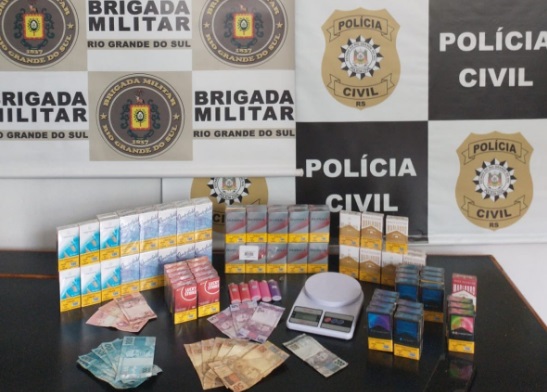 Na residência do investigado, a Polícia Civil da cidade de Marcelino Ramos localizou 90 maços de cigarros de diversas marcas, que foram furtados de um estabelecimento comercial em Marcelino Ramos, no último dia 10. Também foram achadas cocaína, maconha e R$ 1.295 sem procedência, além de outros materiais relacionados ao tráfico de drogas.