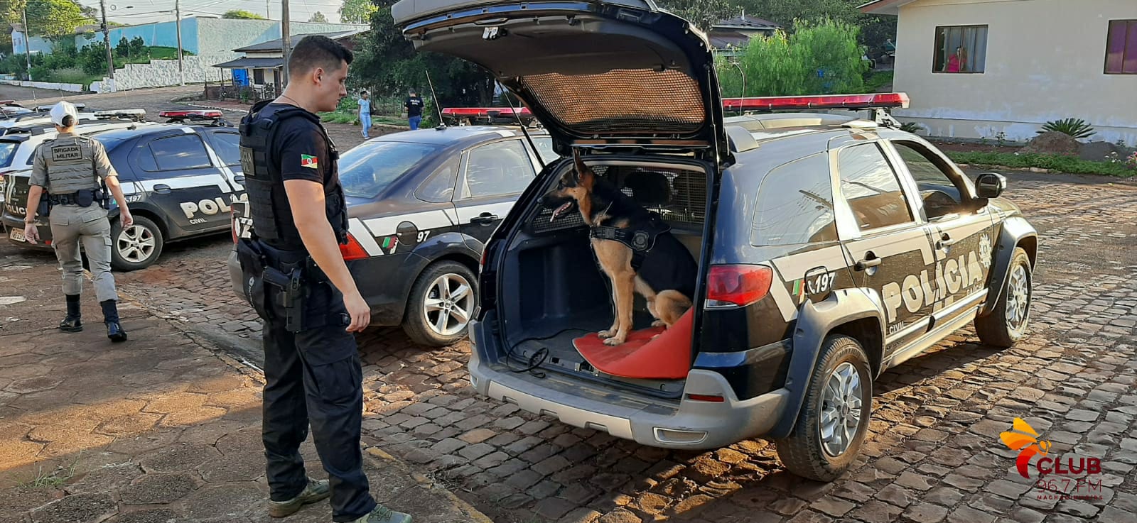 As polícias, Civil e Militar da região, com auxílio de um cão farejador, cumpriram cinco mandados de busca e apreensão na Rua das Chácaras (Rua localizada atrás do cemitério municipal), em Maximiliano de Almeida.