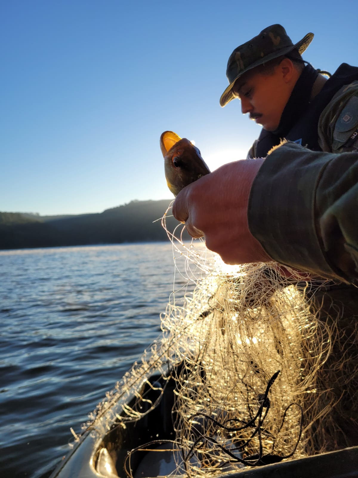 Foram abordados 3 indivíduos, 2 veículos, 8 embarcações vistoriadas, averiguados 3 acampamentos e recolhidos/apreendidos 12 redes de pesca totalizando 850 metros lineares de diversas malhas. Foram devolvidos ao rio 83 peixes das espécies Jundiá, Lambari, Traíra, Palometa e Cachorra. Não foram identificados os proprietários das referidas redes.