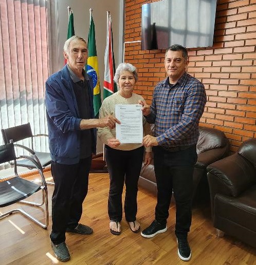 Na manhã da segunda-feira (20), o prefeito de Machadinho, Sidinei Lopes de Lima, realizou um ato de grande importância para o desenvolvimento da agricultura familiar no município. Representando o secretário estadual de Desenvolvimento Rural, Vilson Covatti, o prefeito assinou o contrato de financiamento do programa FEAPER com a Família Polo, composta por Celma Alves Polo e Plinio Polo e família, moradores da Linha Canudo.
