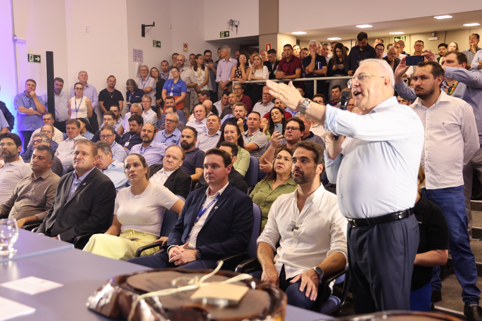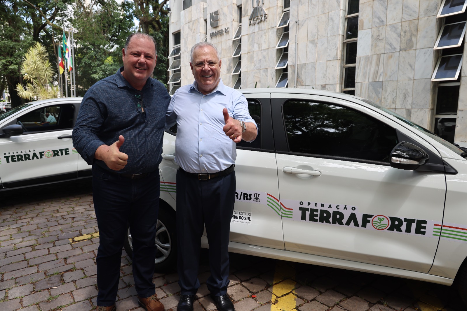 O prefeito de Machadinho, Sidinei Lopes de Lima, esteve em Porto Alegre nesta segunda-feira (22/12) acompanhando a entrega de 121 veículos da Operação Terra Forte, iniciativa do governo do Estado voltada ao fortalecimento da agricultura familiar. A solenidade ocorreu na sede central da Emater/RS-Ascar, e contou com a presença do governador Eduardo Leite.