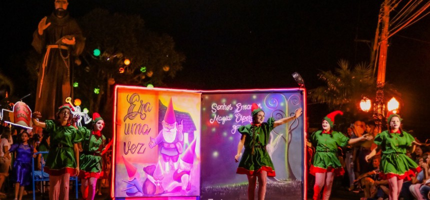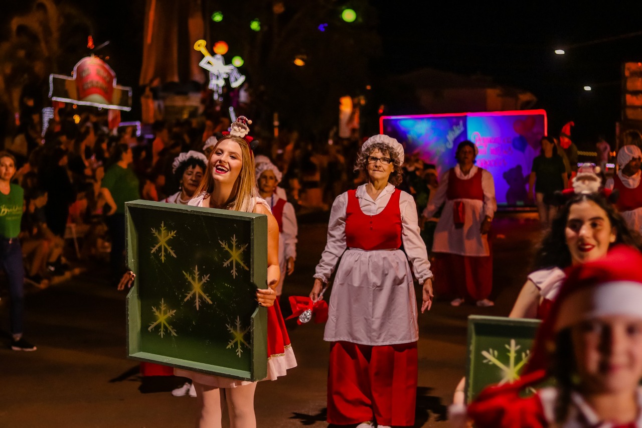 Os encantos do Natal estão tomando conta das ruas em Machadinho. Um dos momentos mais esperados, o Desfile de Natal, aconteceu na noite do sábado, 27 de novembro e trouxe muita magia e emoção. Foi um verdadeiro espetáculo! Envolvendo mais de trezentas pessoas, que realmente souberam encantar e emocionar o público presente, composto por milhares de pessoas, visitantes que vieram prestigiar, turistas e o povo machadinhense. Compareceram famílias e pessoas de todas as idades. Após o desfile, houve o Show com a Banda Recado, na Rua Coberta.