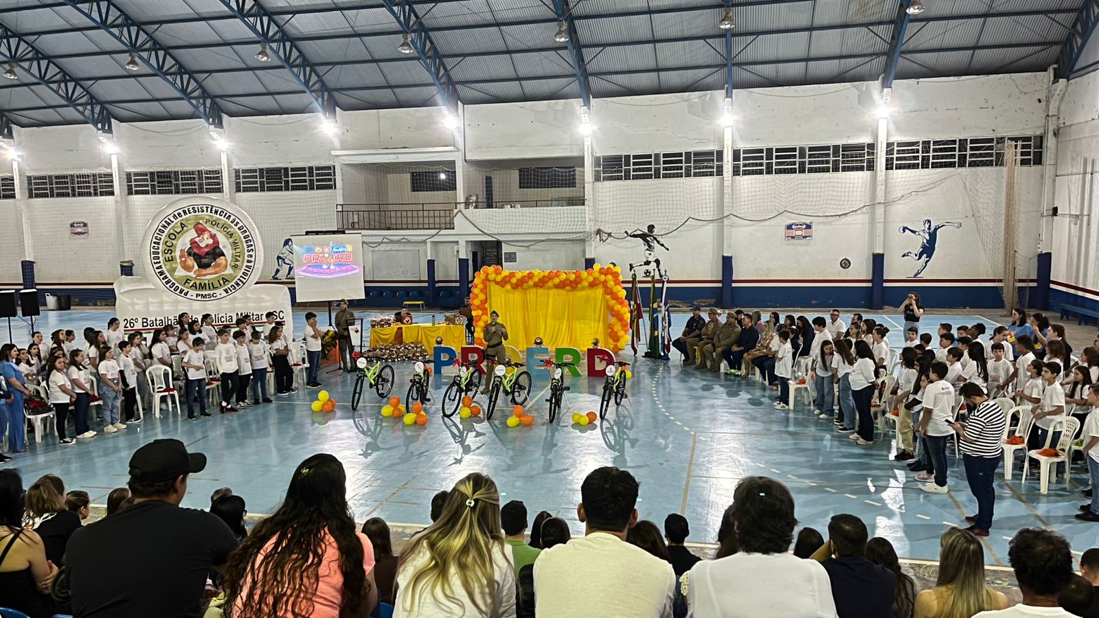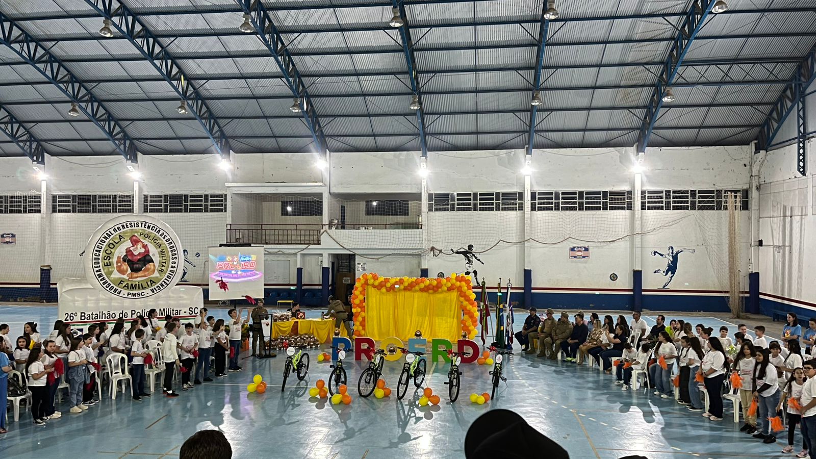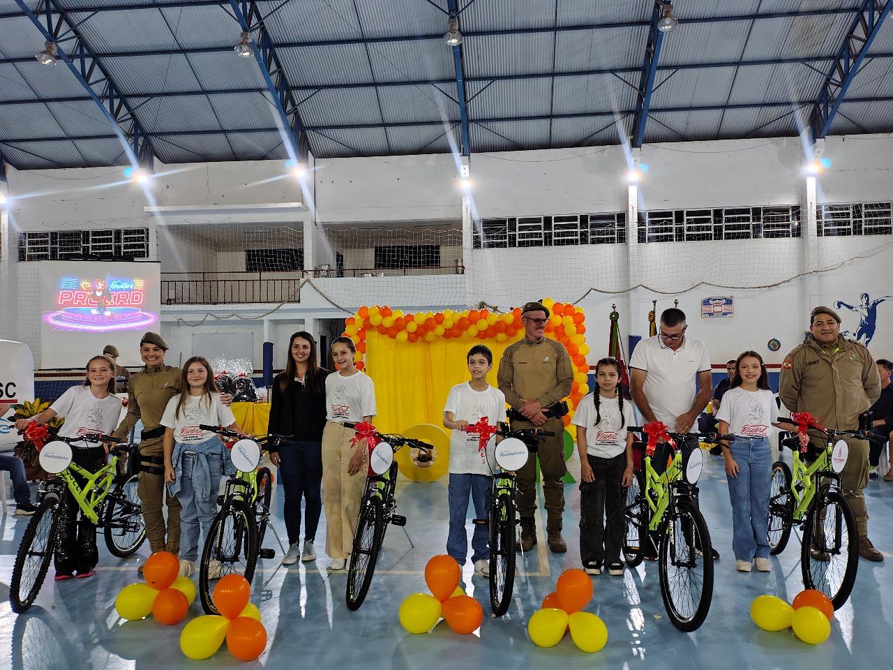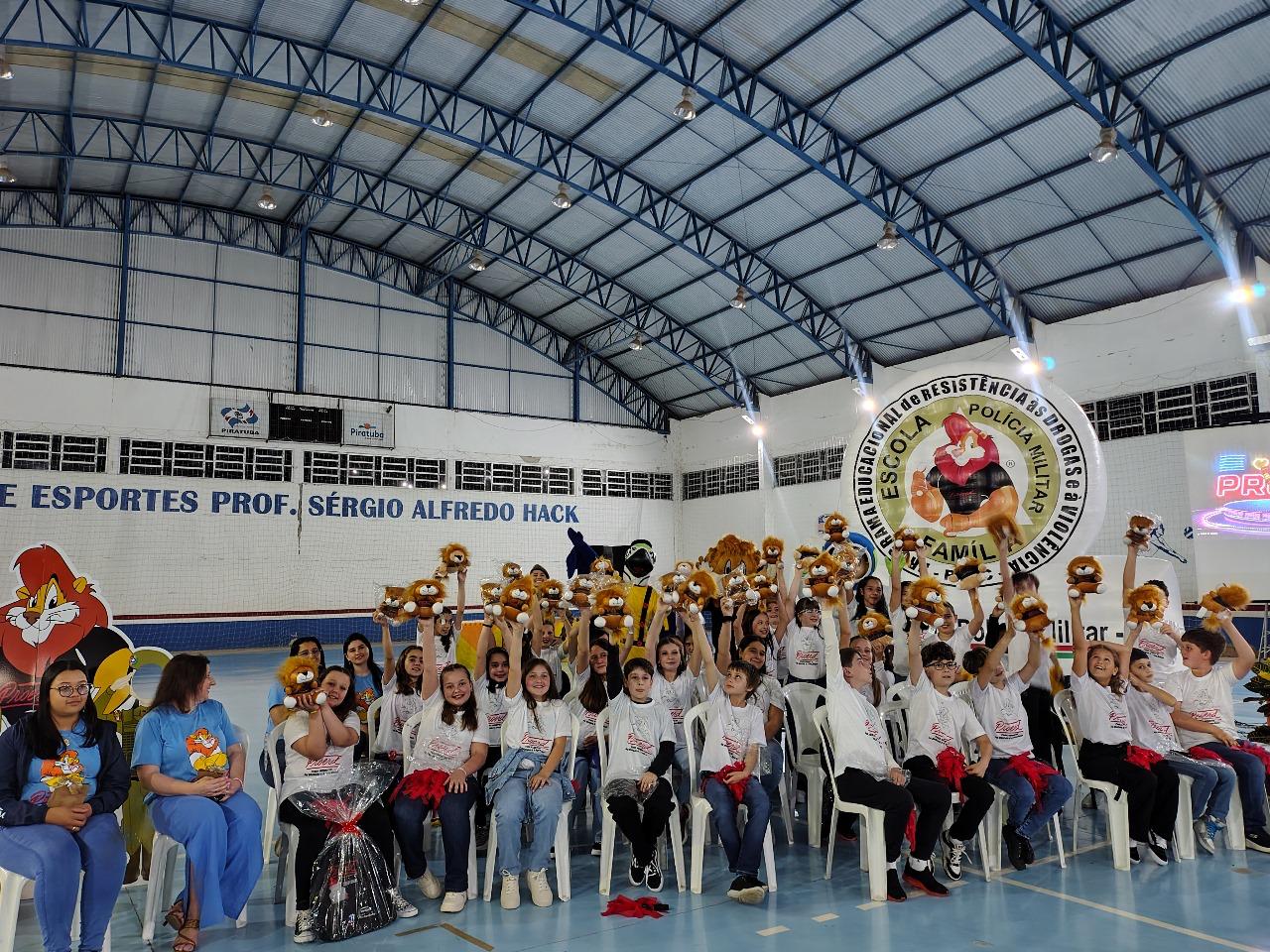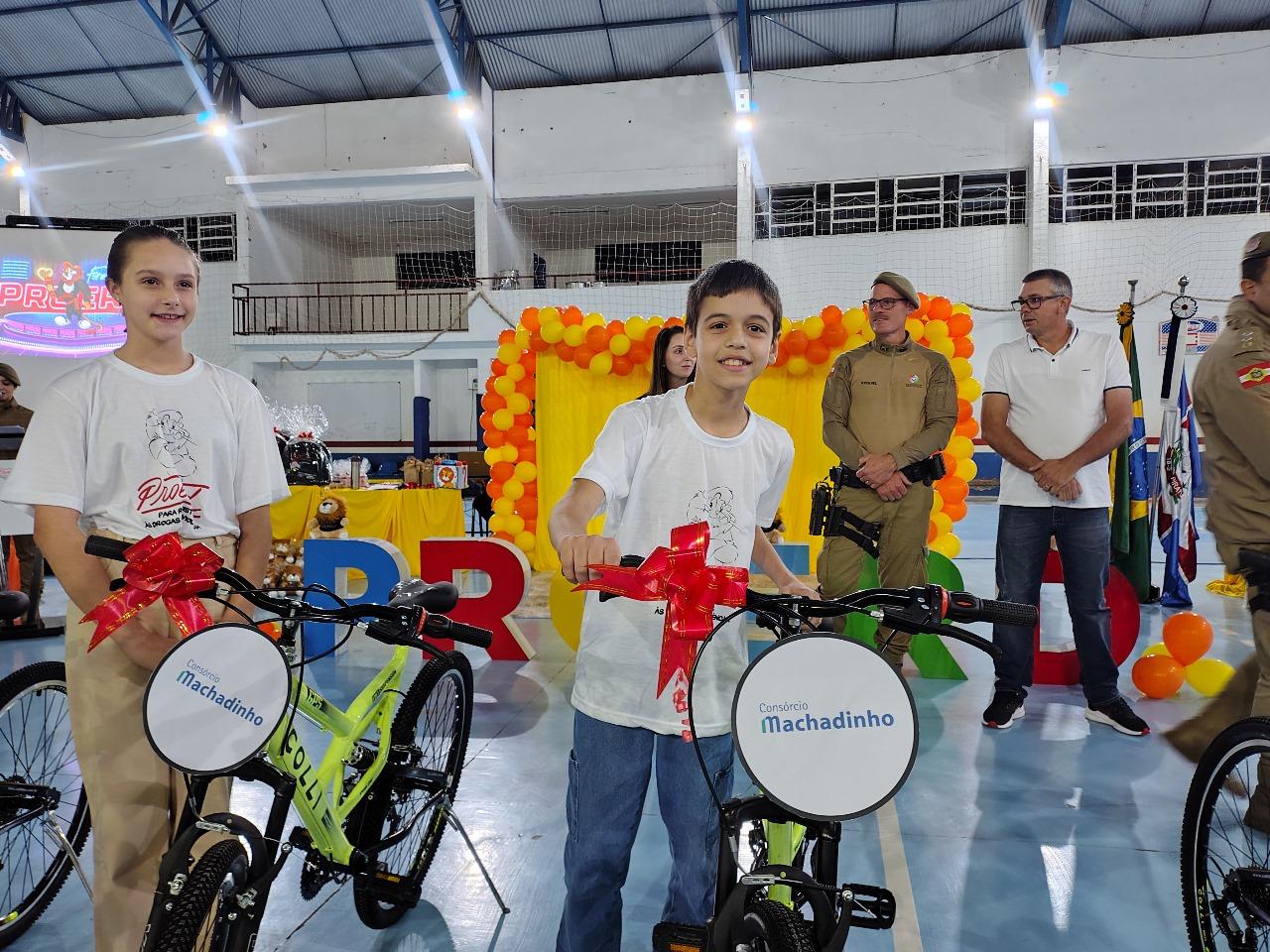 Durante a formatura, realizada no Ginásio Sérgio Alfredo Hack, foram premiadas as melhores redações do Concurso de Redação do Proerd. O melhor aluno de cada uma das seis turmas participantes do programa ganhou uma bicicleta. Ao final, cada formando recebeu uma miniatura do Leão Dare, símbolo do Proerd, completando a alegria de todos.