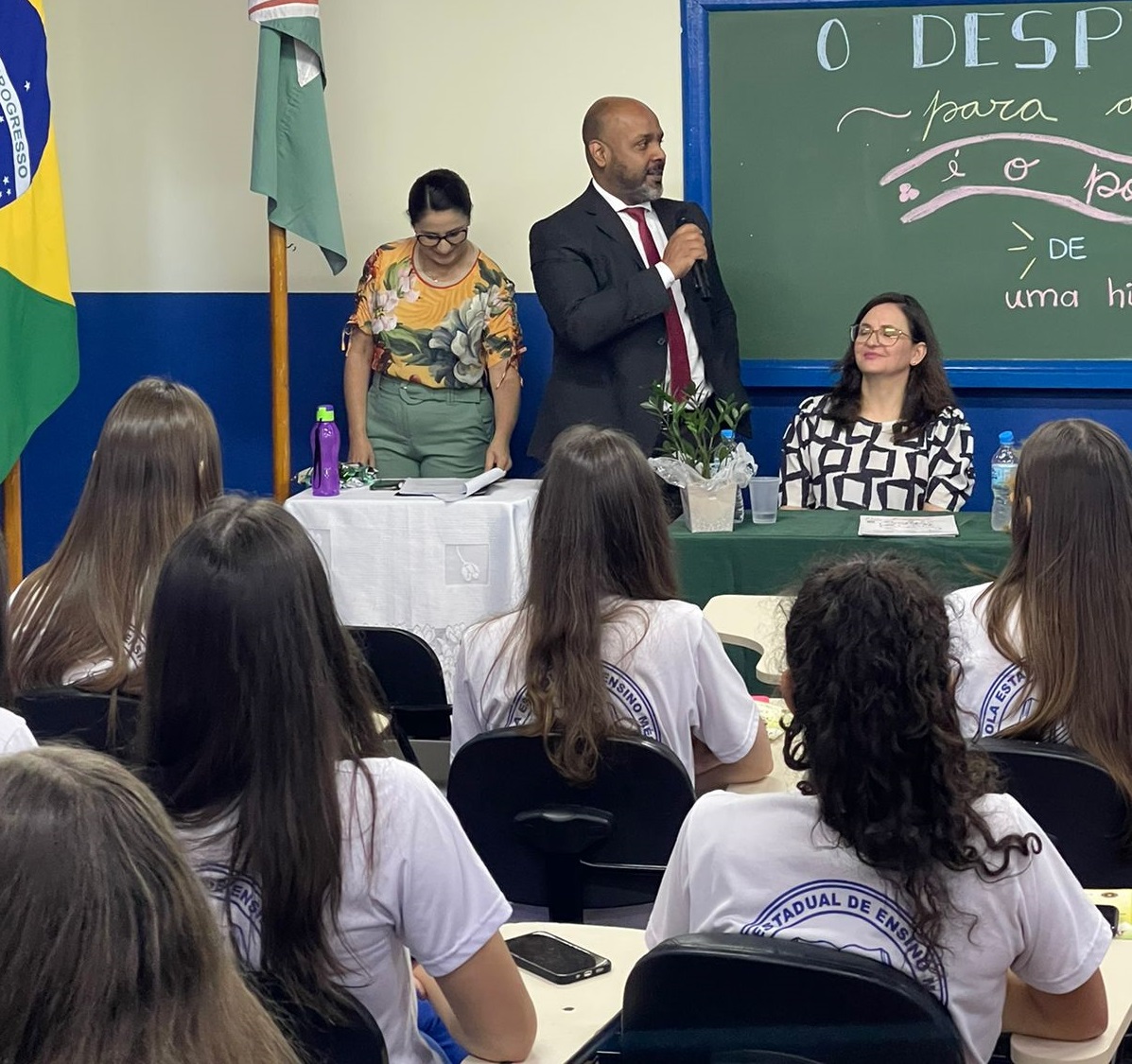 A formatura, além dos formandos, contou com as presenças dos instrutores, que foram os Policiais, Zanandrea e Sandra; do Juiz da Comarca, Dr. Rafael Alessandro Pereira Olympio; Comandante da 4ª Companhia de Polícia Militar – Tenente Fernando Spada Rinaldi; Polícial Civil – Inspetora Ticiana Fernandes de Abreu Aragão de Araújo; Presidente do CONSEPRO, Robson Vinicios Duarte Kalb, Diretora do Castro, Lisiane Ventura Furlanetto; Coordenadora Pedagógica, Caren Laís Benedet Brandão.