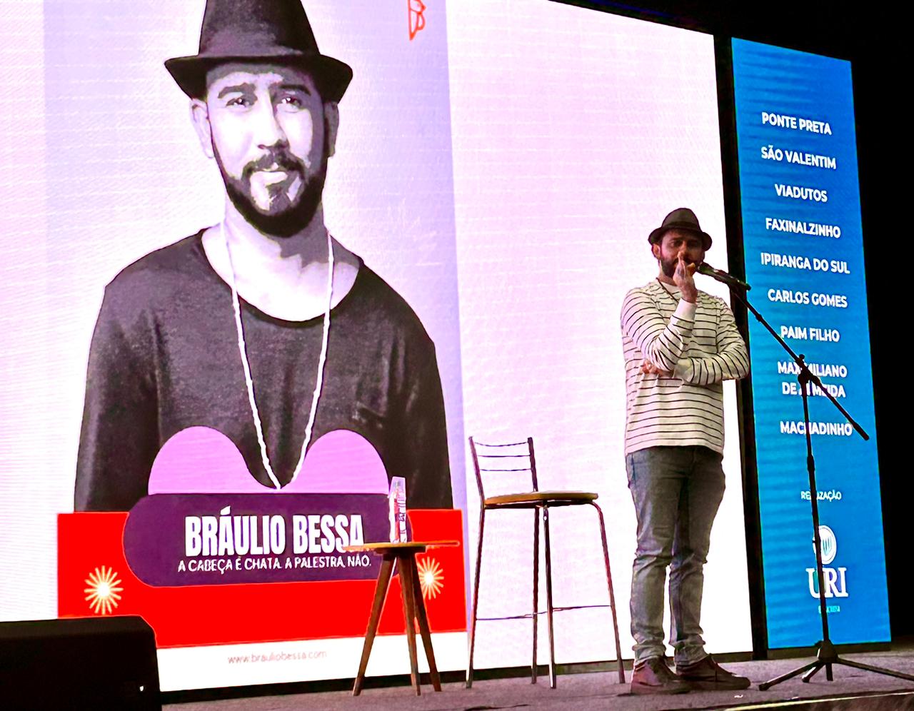 Já na noite de quinta-feira, 17 de julho, o grupo esteve presente em Erechim, para prestigiar o poeta, escritor e palestrante Bráulio Bessa, que veio diretamente do sertão do Ceará para encantar e emocionar com sua história de vida, poesia e uma mensagem poderosa: a de que um professor pode mudar para sempre o destino de uma criança ou adolescente.