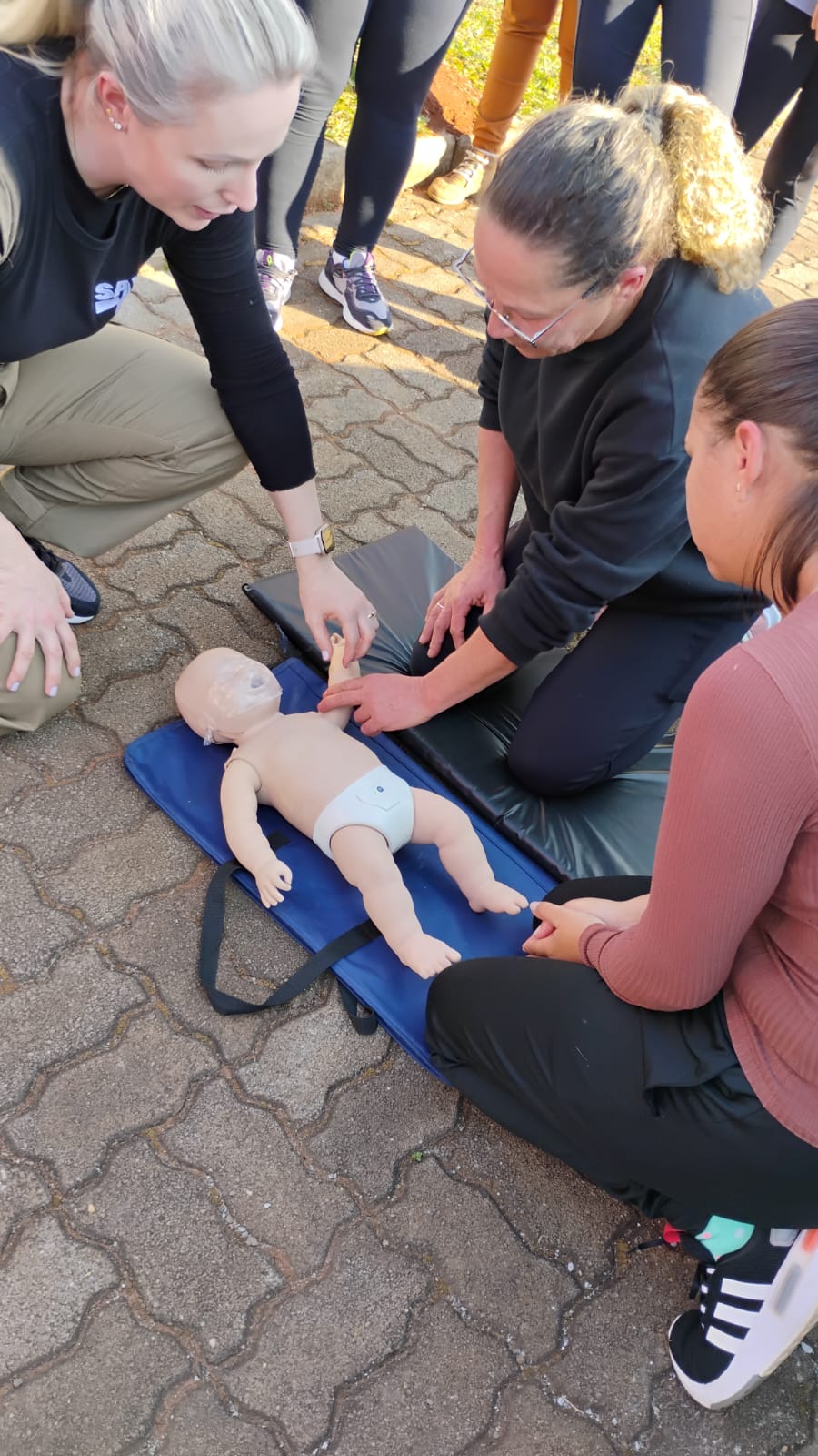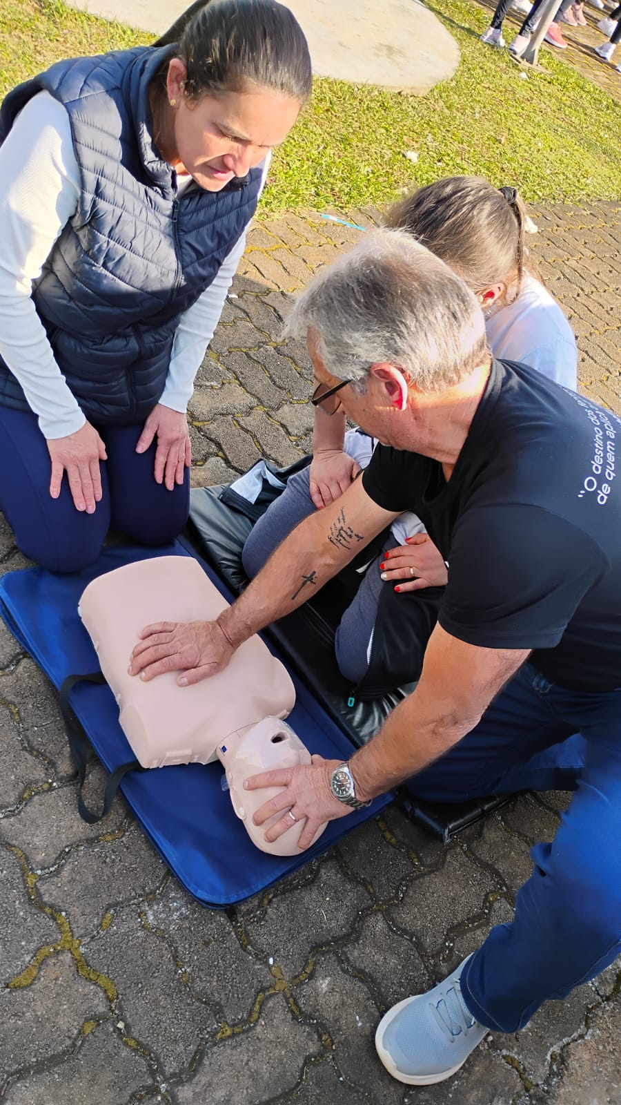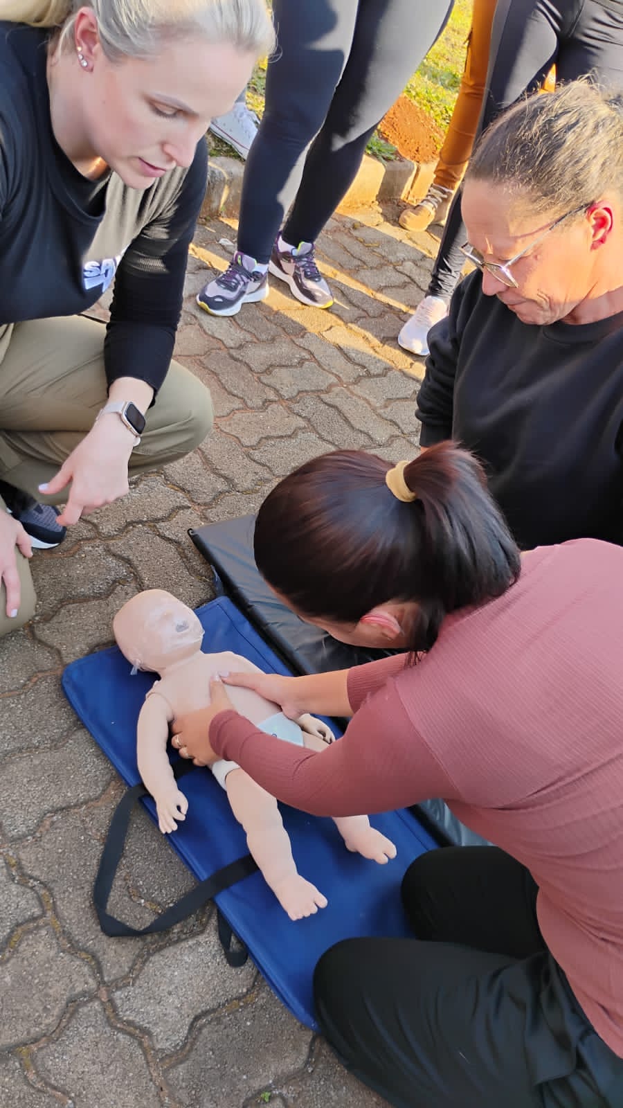 O treinamento combinou parte teórica e uma intensa vivência prática, com atividades ao ar livre utilizando bonecos e equipamentos de simulação para representar situações reais de emergência, como afogamentos, desmaios e outras intercorrências que exigem ação rápida e precisa por parte de quem estiver presente no momento do ocorrido.