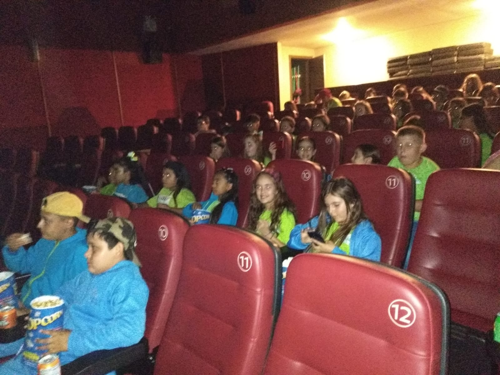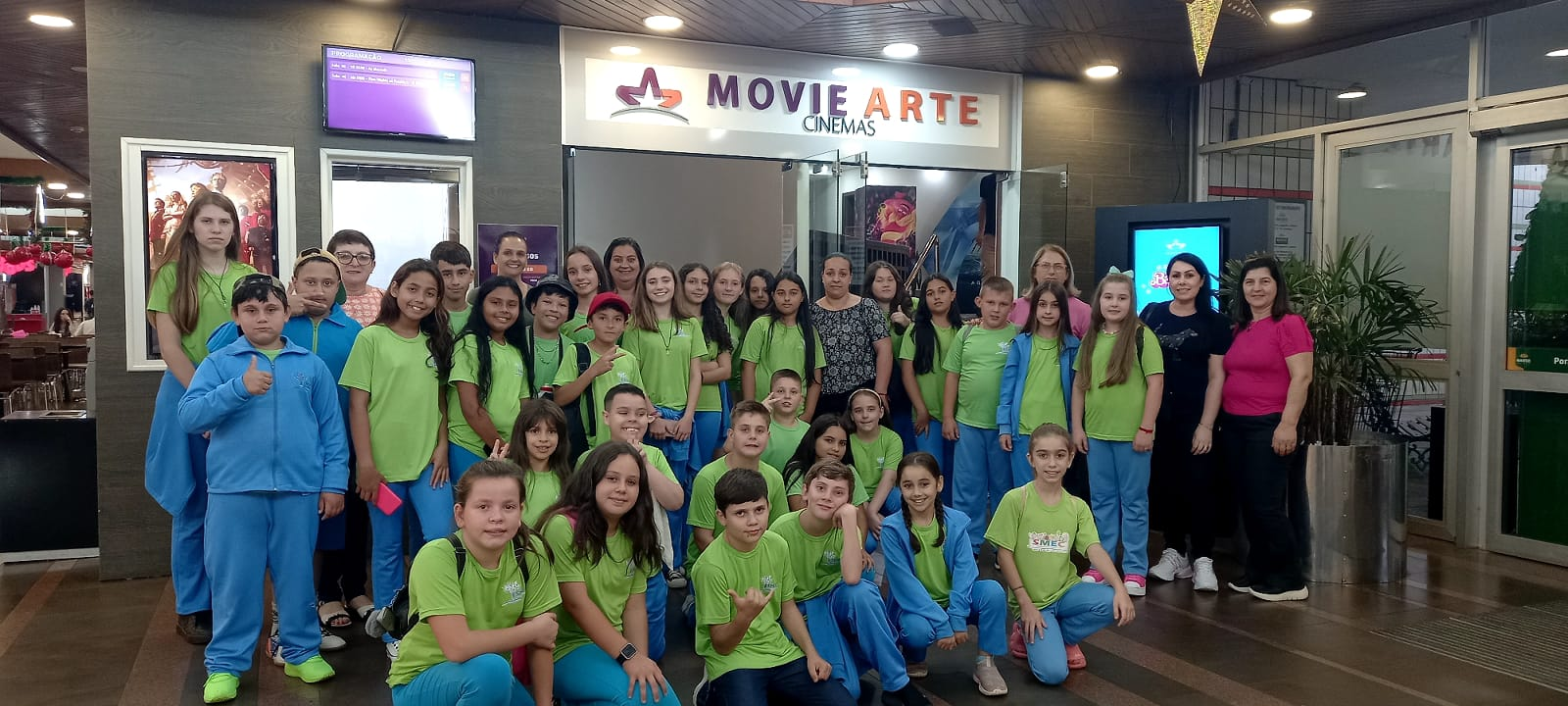 Os alunos que participaram da viagem estavam muito felizes e encantados com tudo o que vivenciaram, pois a maioria deles nunca tinha ido antes no cinema.