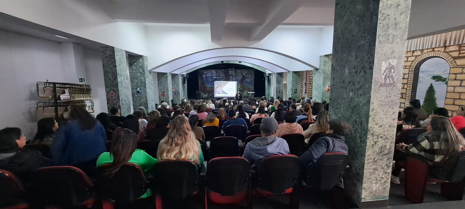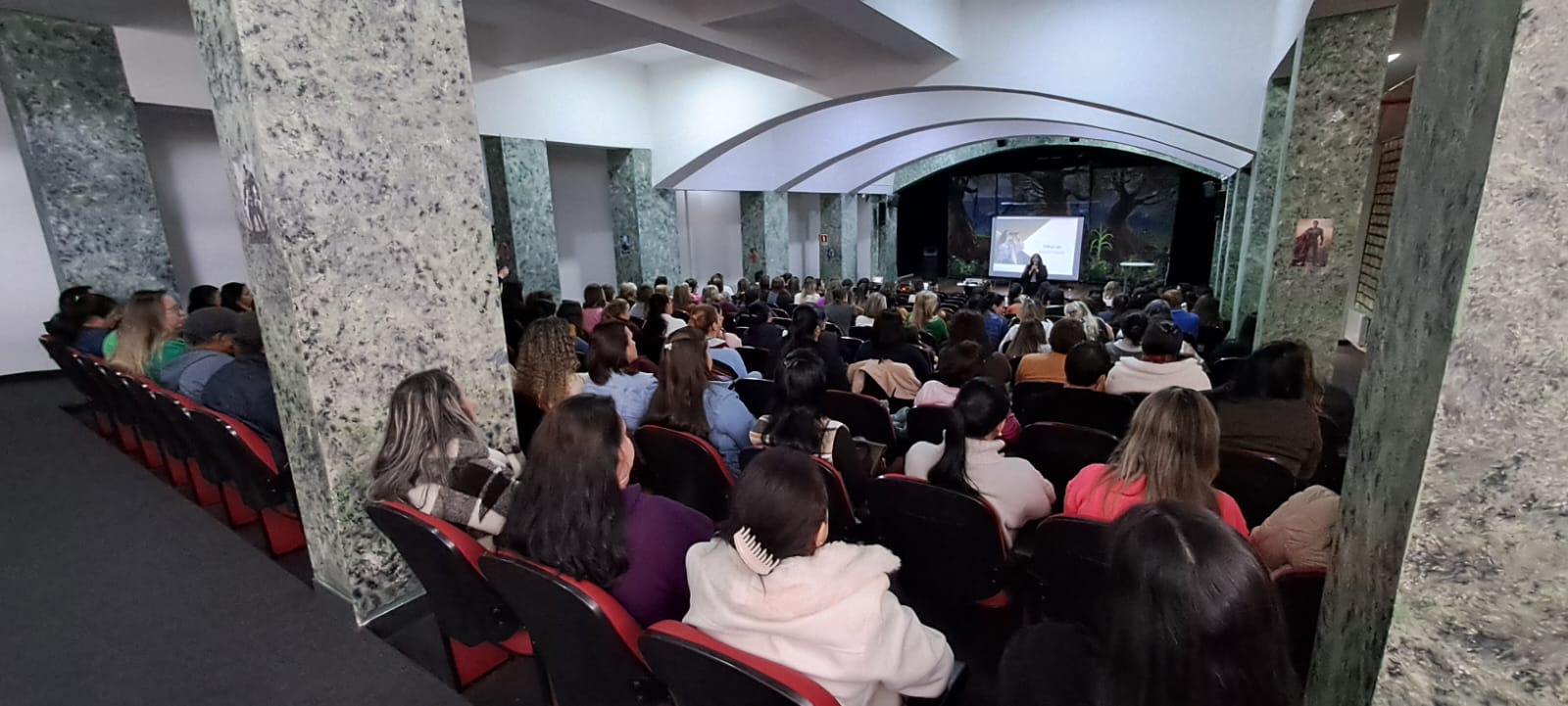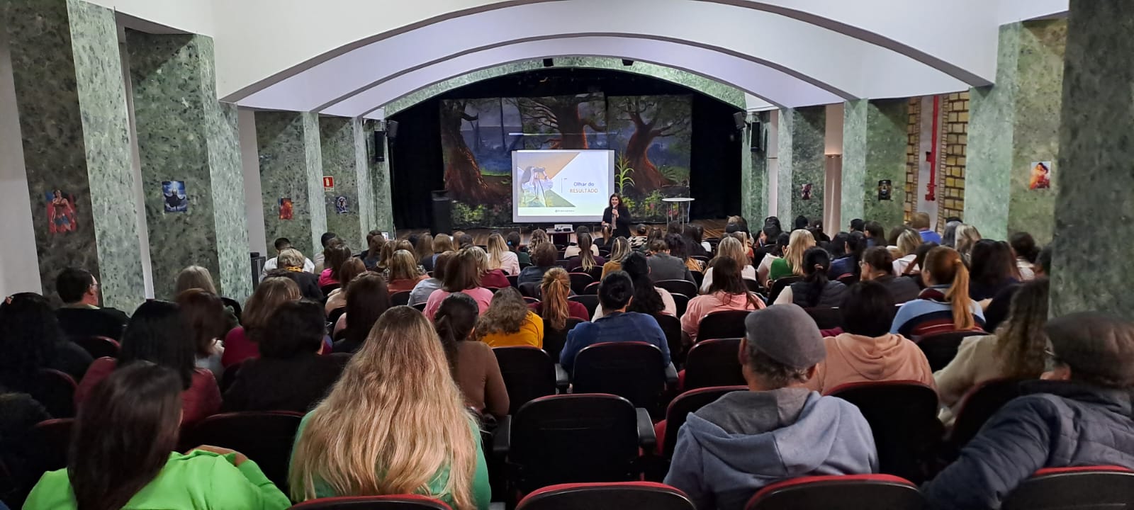 Na terça-feira, 22 de julho, todos os profissionais participaram de uma palestra com a psicóloga Kiona Ames, da cidade de Chapecó. Em sua fala, Kiona proporcionou uma reflexão profunda e necessária sobre os estudantes, suas diferentes realidades e a importância do acolhimento e estímulo dentro do ambiente escolar.