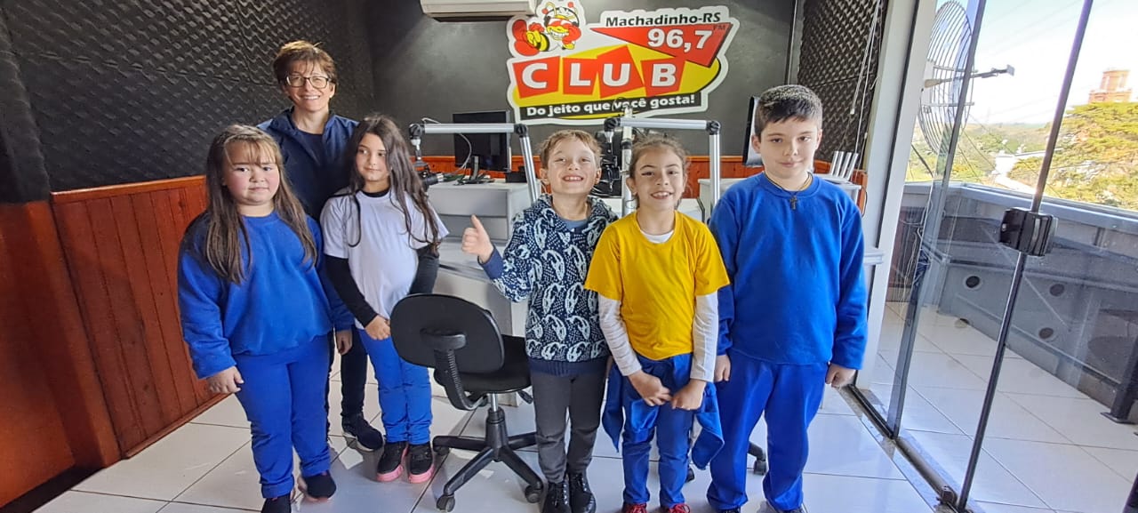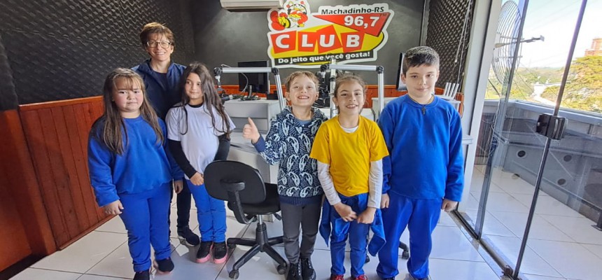 Alunos do 2º ano do Ensino Fundamental, da Escola Estadual Castro Alves de Machadinho, coordenados pela Professora Regina Pinali, realizaram uma visita à Radio Club FM 96.7, na tarde desta terça-feira, 28.