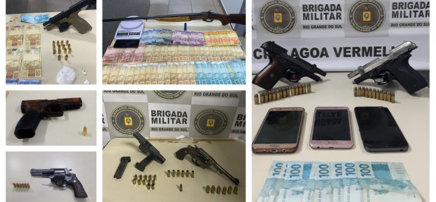Sem dar trégua para a criminalidade, a Brigada Militar já tem saldo de seis presos, um menor apreendido, além da apreensão de cerca de R$ 5 mil, celulares, balança de precisão, drogas veículos, uma espingarda, cinco pistolas, dois revólveres e 71 munições de diferentes calibres.