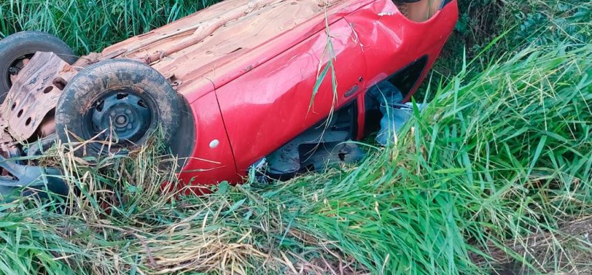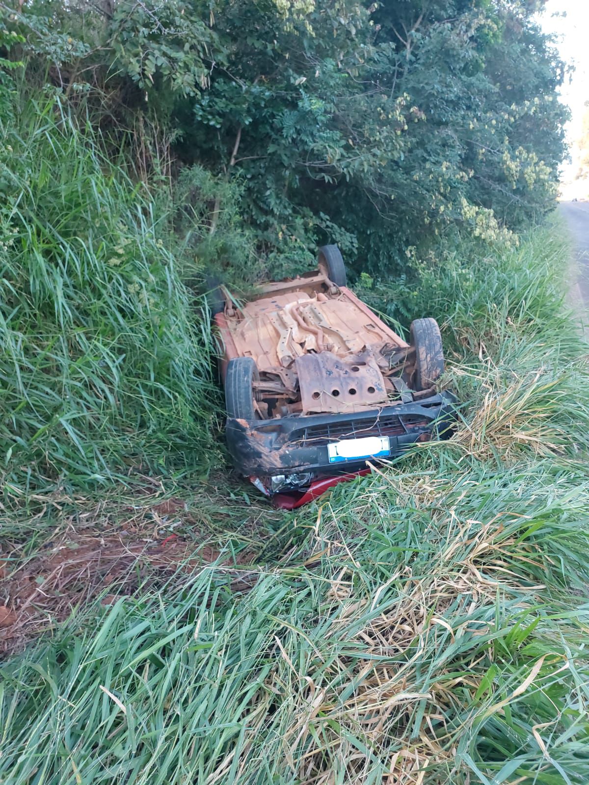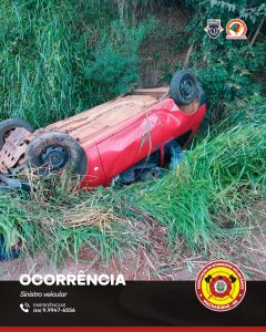 Saída de pista com capotamento mobiliza Bombeiros em Machadinho