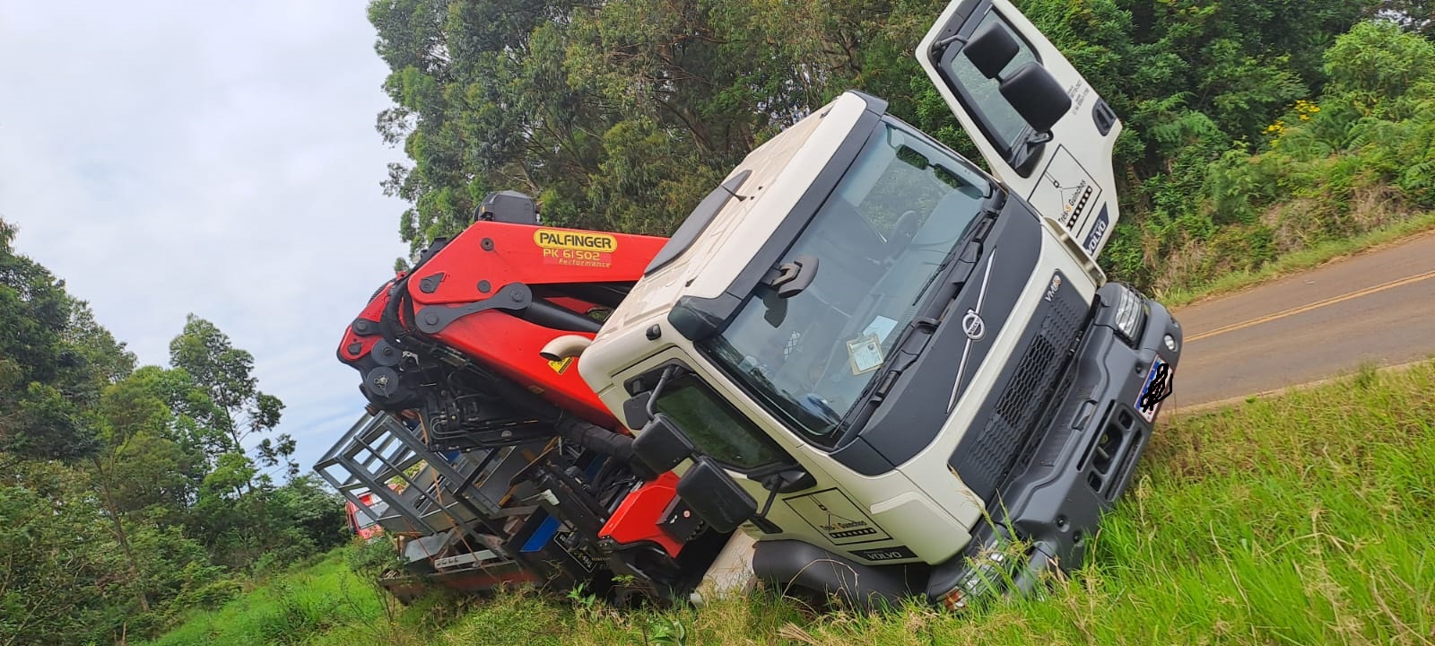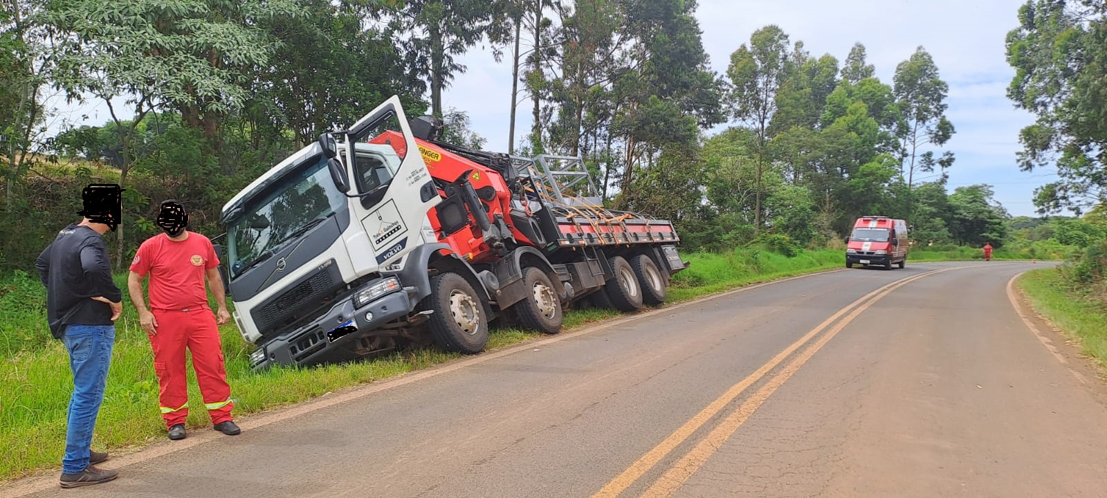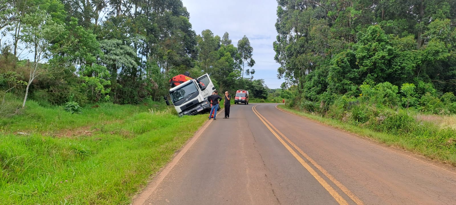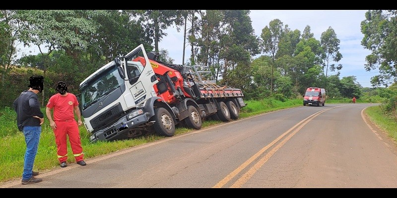 Na manhã desta quarta-feira, por volta das 9h45m, um caminhão acabou saindo da pista na ERS-208, próximo ao acesso ao Loteamento Sabiá, em Machadinho, no trecho conhecido como a curva ao final da reta. O veículo vinha de Erechim e seguia no sentido Maximiliano/Machadinho quando, segundo relato do motorista e de uma testemunha que trafegava logo atrás, um automóvel que vinha no sentido contrário teria invadido a pista, forçando o condutor do caminhão a desviar e sair da rodovia.