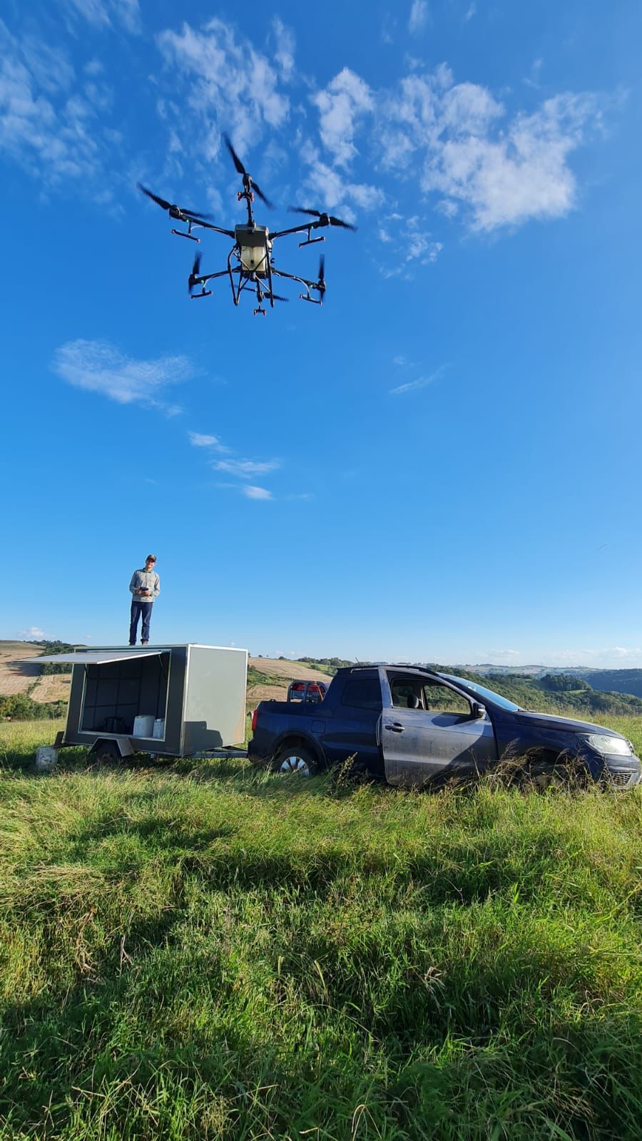 Segundo Mateus, o custo atual (abril 2023) do serviço prestado para os agricultores interessados no serviço, é de R$ 150,00 (Cento e Cinquenta Reais), por hectare e os agricultores interessados, poderão entrar em contato através do telefone/whats: 54 996 38 34 80. Informações, também no instagram: alvodronesagricolas.