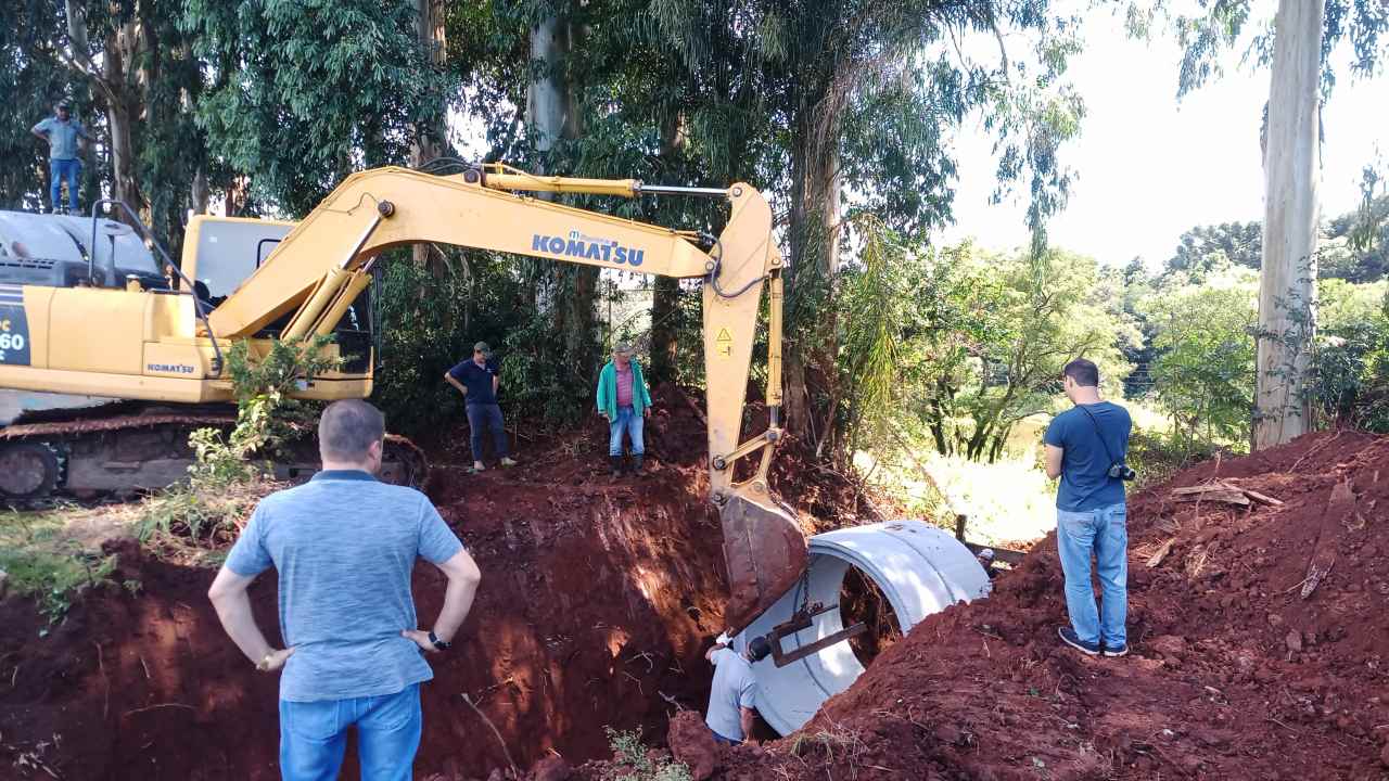 Nesta semana os trabalhos da Secretaria de Obras e Viação local, estiveram sendo realizados na Comunidade da Linha Santa Terezinha. Em parceria com os produtores locais, parte da estrada foi reconstruída com a instalação de tubos de grande porte, substituindo o atual material que possuía estrutura de madeira. Como forma de contrapartida, os produtores auxiliam com mão de obra e até maquinário para que os trabalhos sejam realizados.