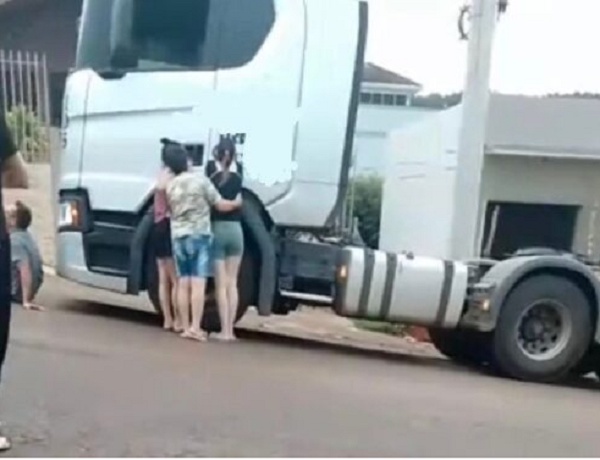 Segundo informações, o homem que manobrava o caminhão acabou atingindo a própria mãe. Ele não percebeu que a mesma cruzava pelo veículo.