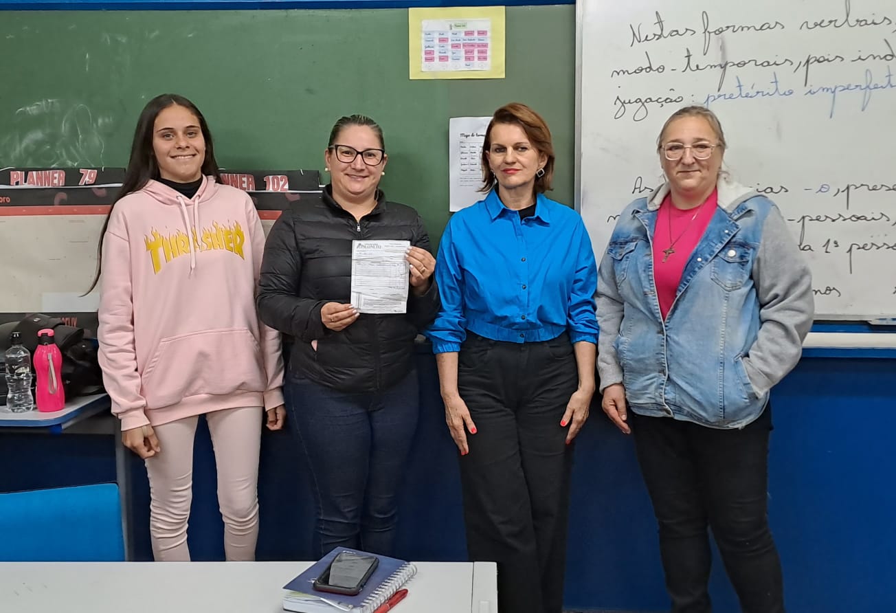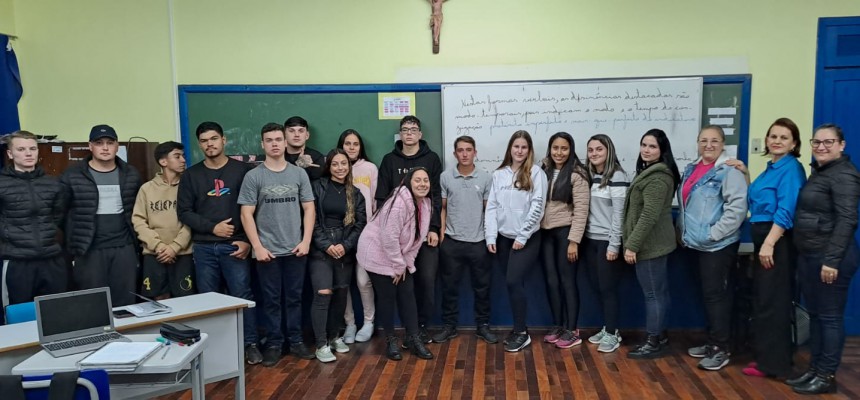 Na noite da segunda-feira, nas dependências do Castro, os alunos, juntamente com a professora Gisele, realizaram a entrega da ração para a AAAMA (Associação Amigos dos Animais de Machadinho), que esteve representada pela presidente da entidade, Cleo Martini e pela Profe Jusse, que é incentivadora da causa e da associação.