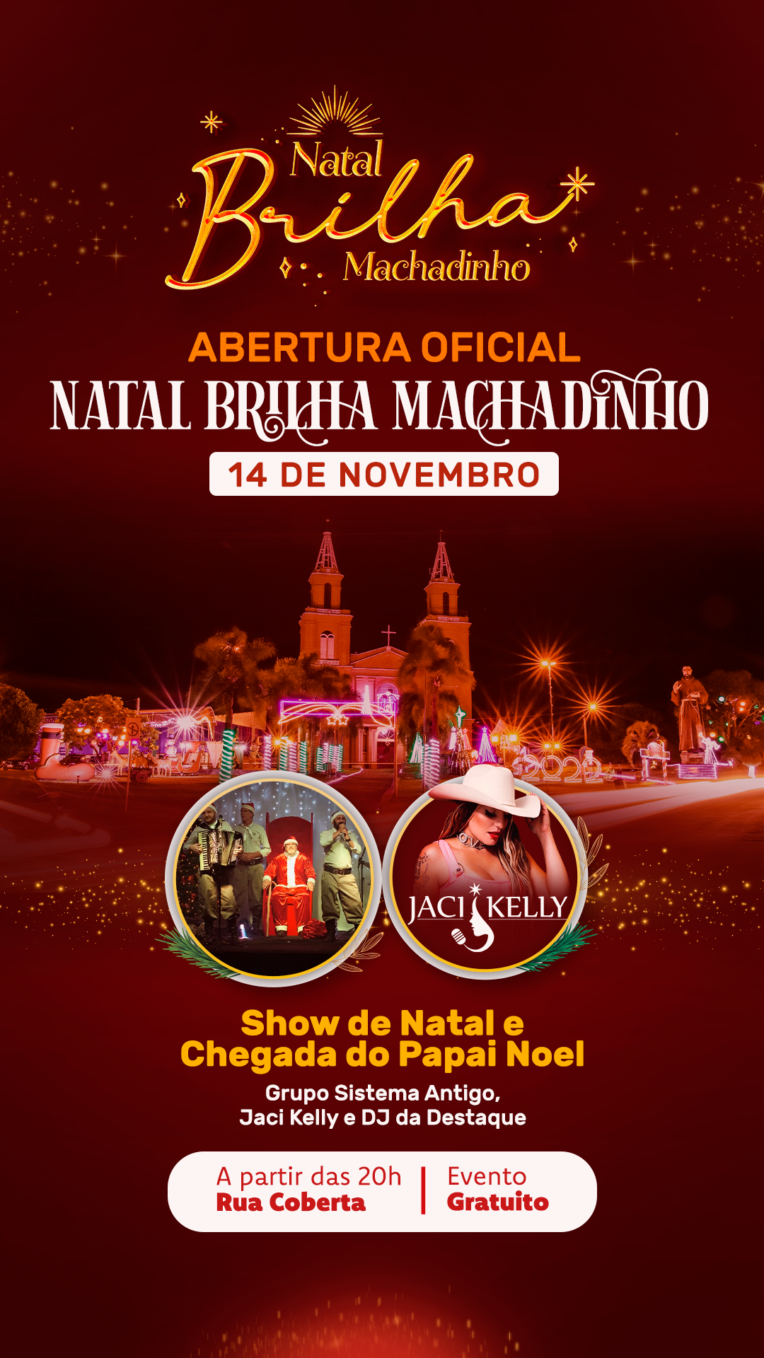 Na mesma noite será lançada a programação completa do Natal Brilha Machadinho 2022 – A origem do Natal. Serão divulgadas datas e atrações que farão parte da edição deste ano. Antecipando que haverá o tradicional Desfile de Natal, Parada Natalina, apresentações das Escolas Municipais e grandes shows.