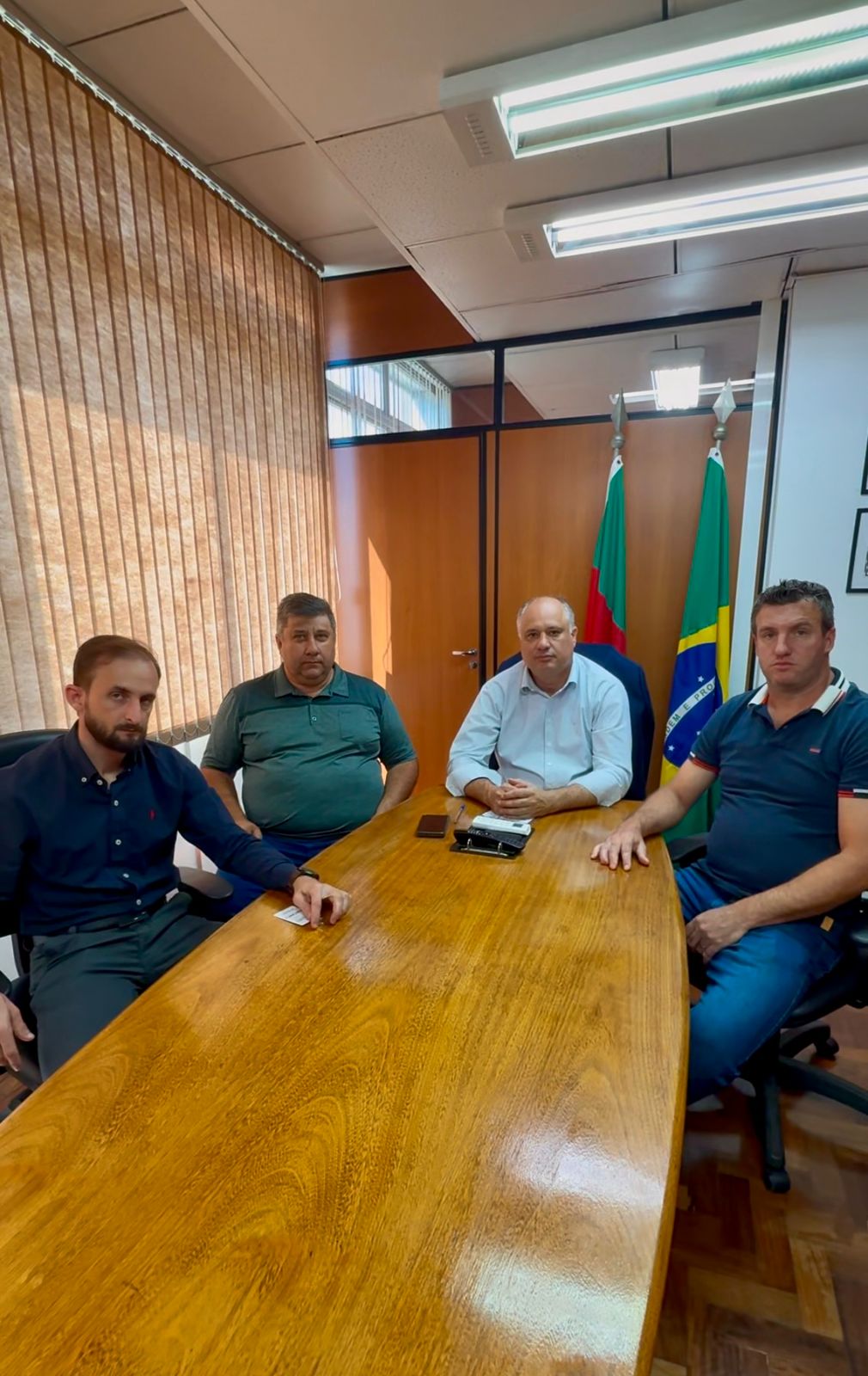 Nesta terça-feira, dia 11 de fevereiro de 2025, uma comitiva de Machadinho, composta pelos vereadores Zauri Piloneto (MDB), Toscan (MDB) e Diego Pietrobon (MDB), estiveram no Gabinete do Deputado Estadual Luciano Silveira, em Porto Alegre, buscando apoio para tirar dos papeis e levar a termo, a (tão sonhada e aguardada) pavimentação da ERS-442, rodovia que liga os municípios de Machadinho e São José do Ouro.