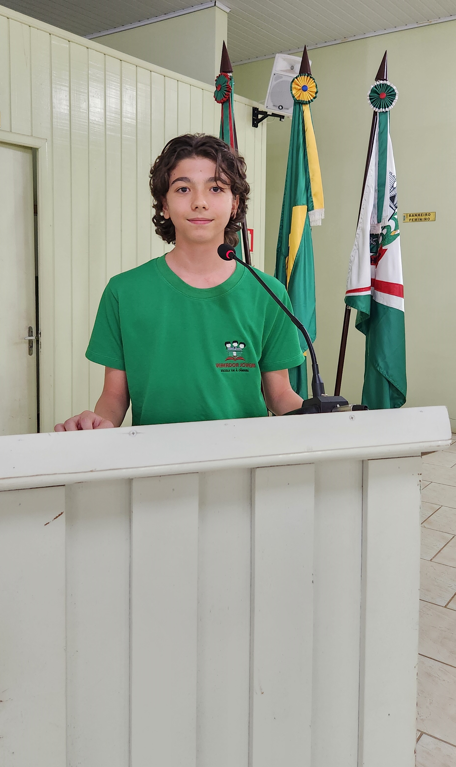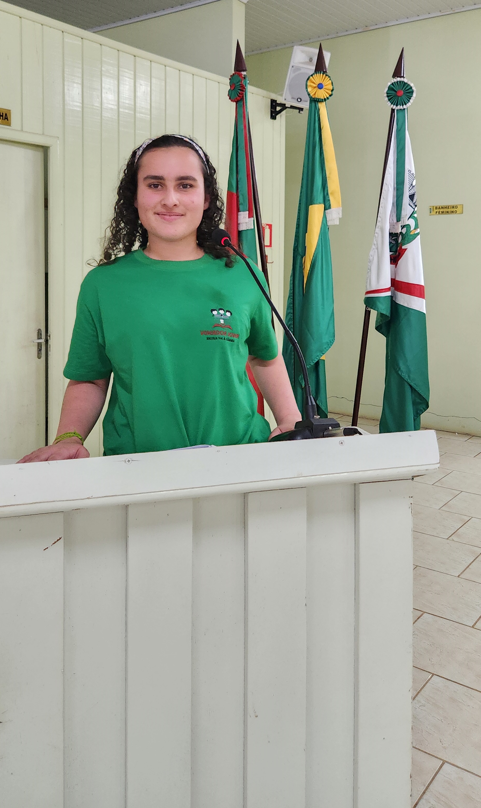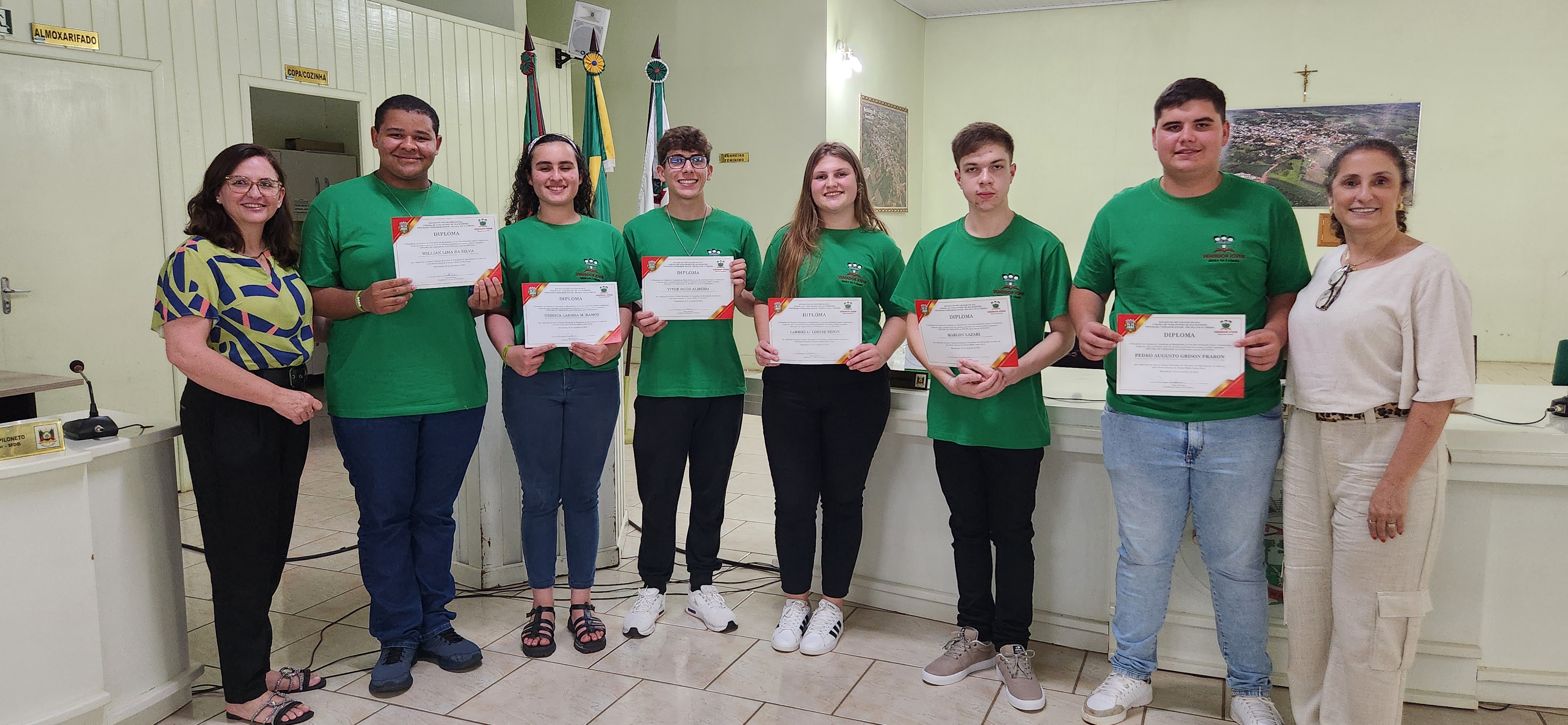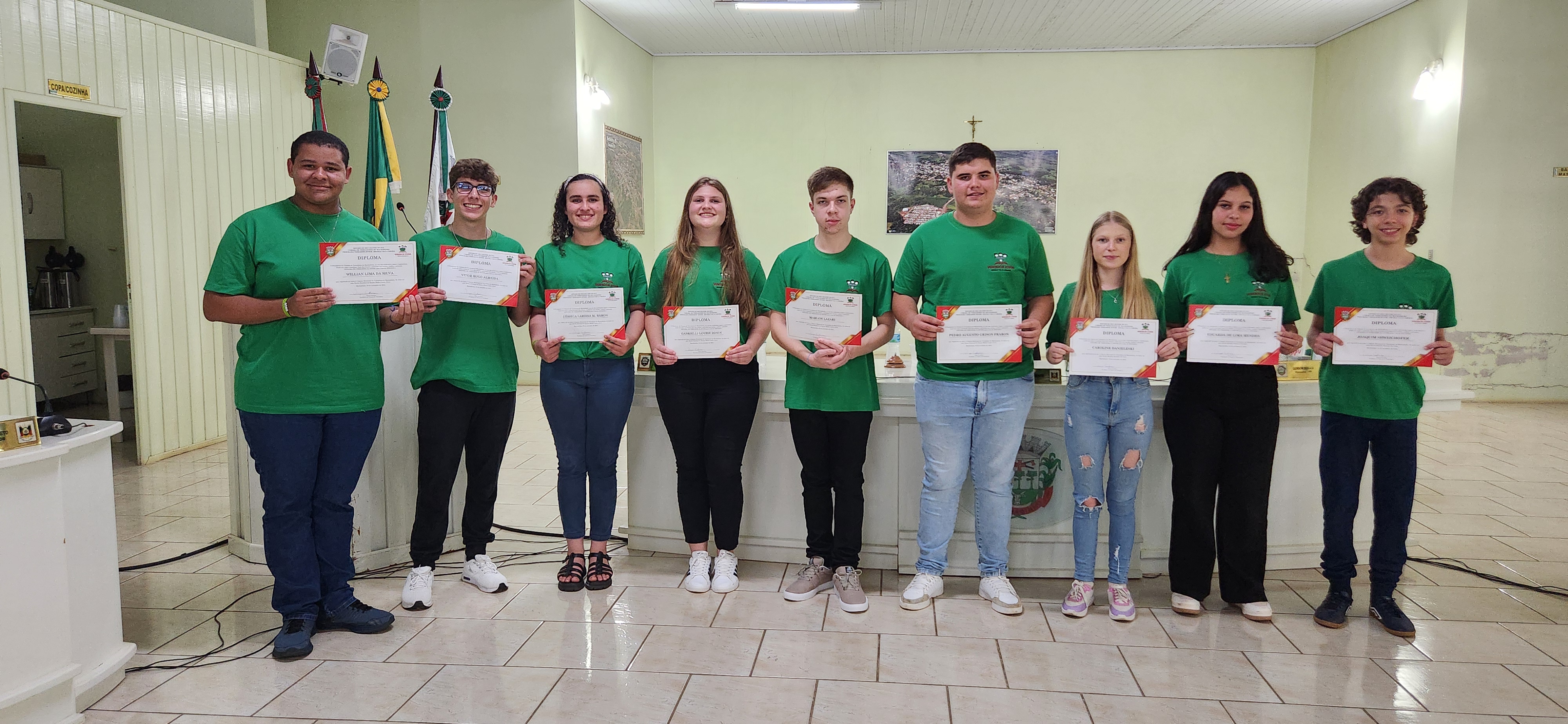 O programa, vai além de despertar o interesse pela política; seu objetivo é a formação de cidadãos conscientes, com pensamento crítico e ético, capazes de contribuir para uma sociedade mais justa e digna. Durante a solenidade, a mesa de honra foi composta pelo presidente da Câmara, Diego Pietrobon; o prefeito em exercício, Dorival de Lima Vilarino; a secretária de Educação, Leoni Pelicer Schwaab; a coordenadora pedagógica da Escola Murian, professora Graciela Camel; a diretora da Escola Castro Alves, Lisiane Ventura Furlanetto; e Professora Caren Brandão, representante do projeto na Escola Castro Alves.