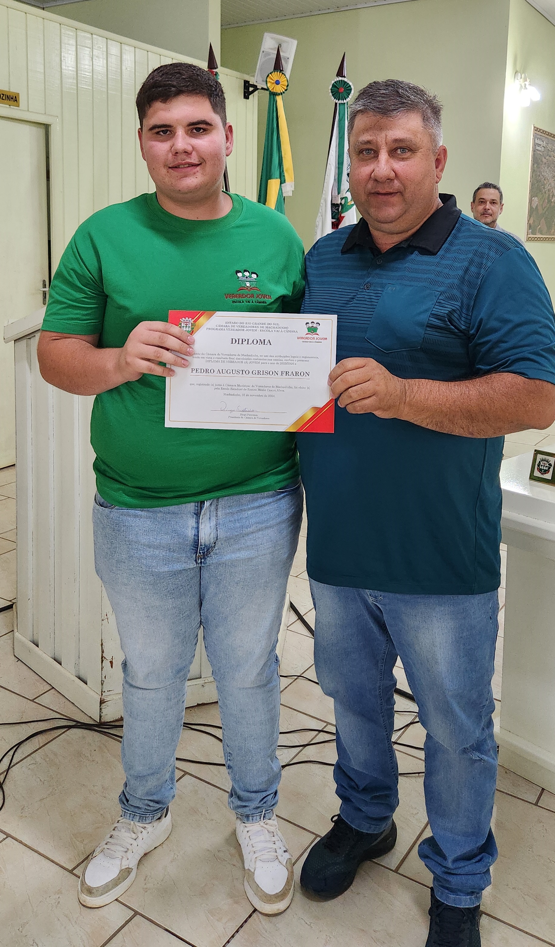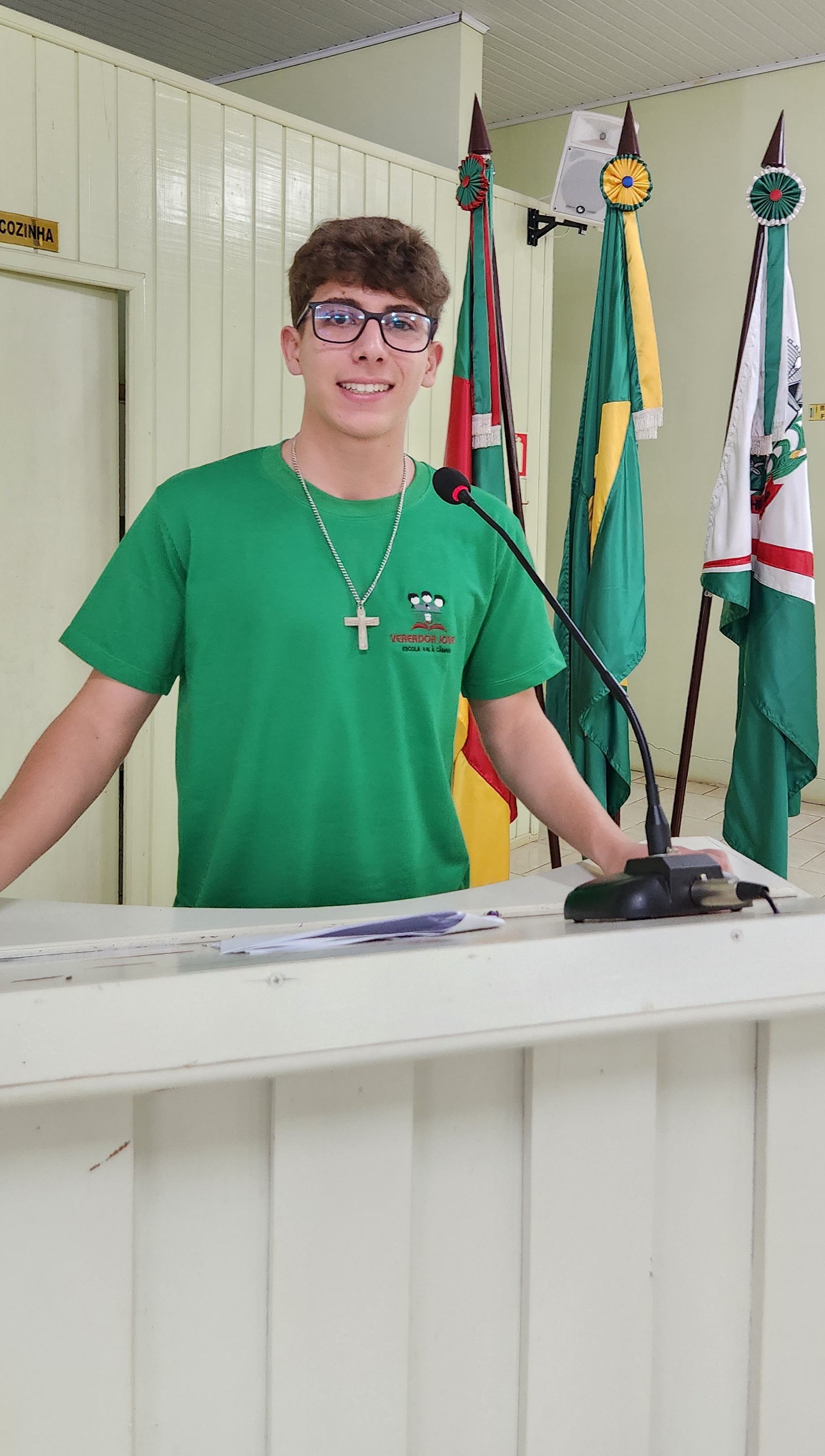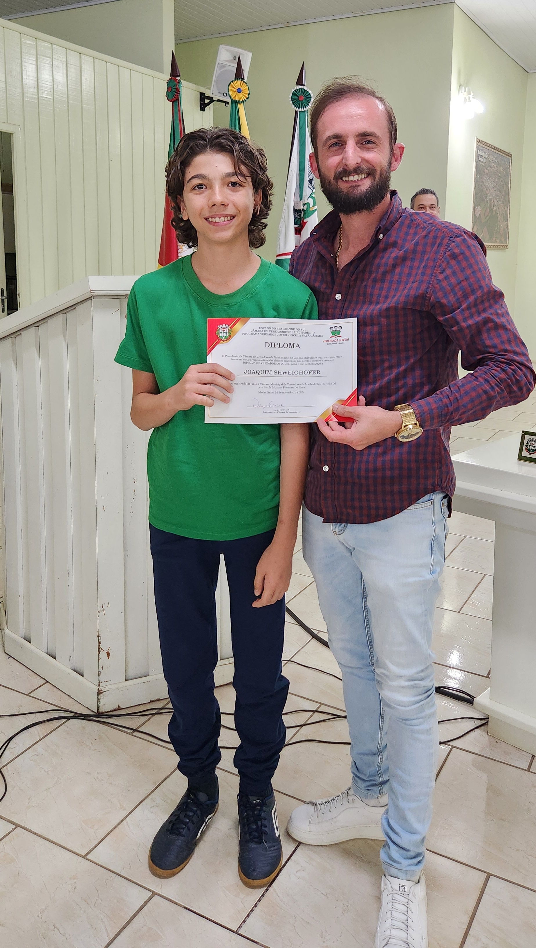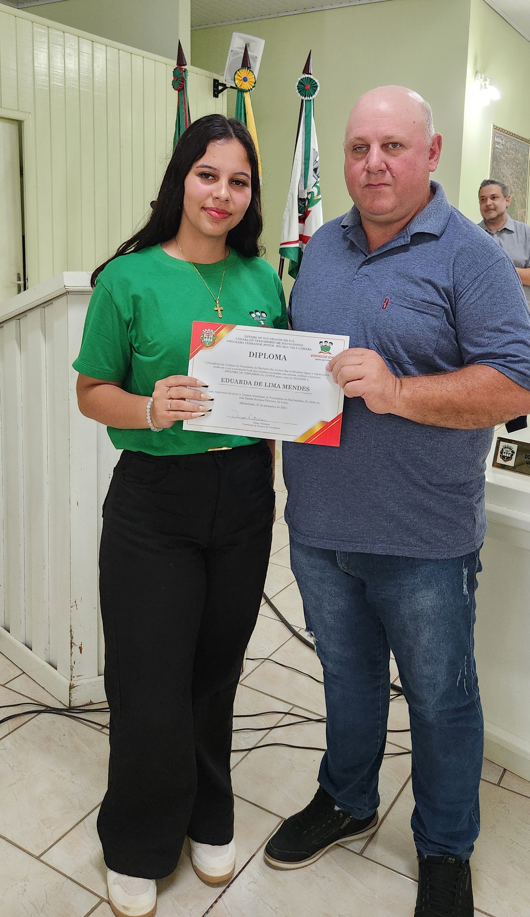 O programa, vai além de despertar o interesse pela política; seu objetivo é a formação de cidadãos conscientes, com pensamento crítico e ético, capazes de contribuir para uma sociedade mais justa e digna. Durante a solenidade, a mesa de honra foi composta pelo presidente da Câmara, Diego Pietrobon; o prefeito em exercício, Dorival de Lima Vilarino; a secretária de Educação, Leoni Pelicer Schwaab; a coordenadora pedagógica da Escola Murian, professora Graciela Camel; a diretora da Escola Castro Alves, Lisiane Ventura Furlanetto; e Professora Caren Brandão, representante do projeto na Escola Castro Alves.