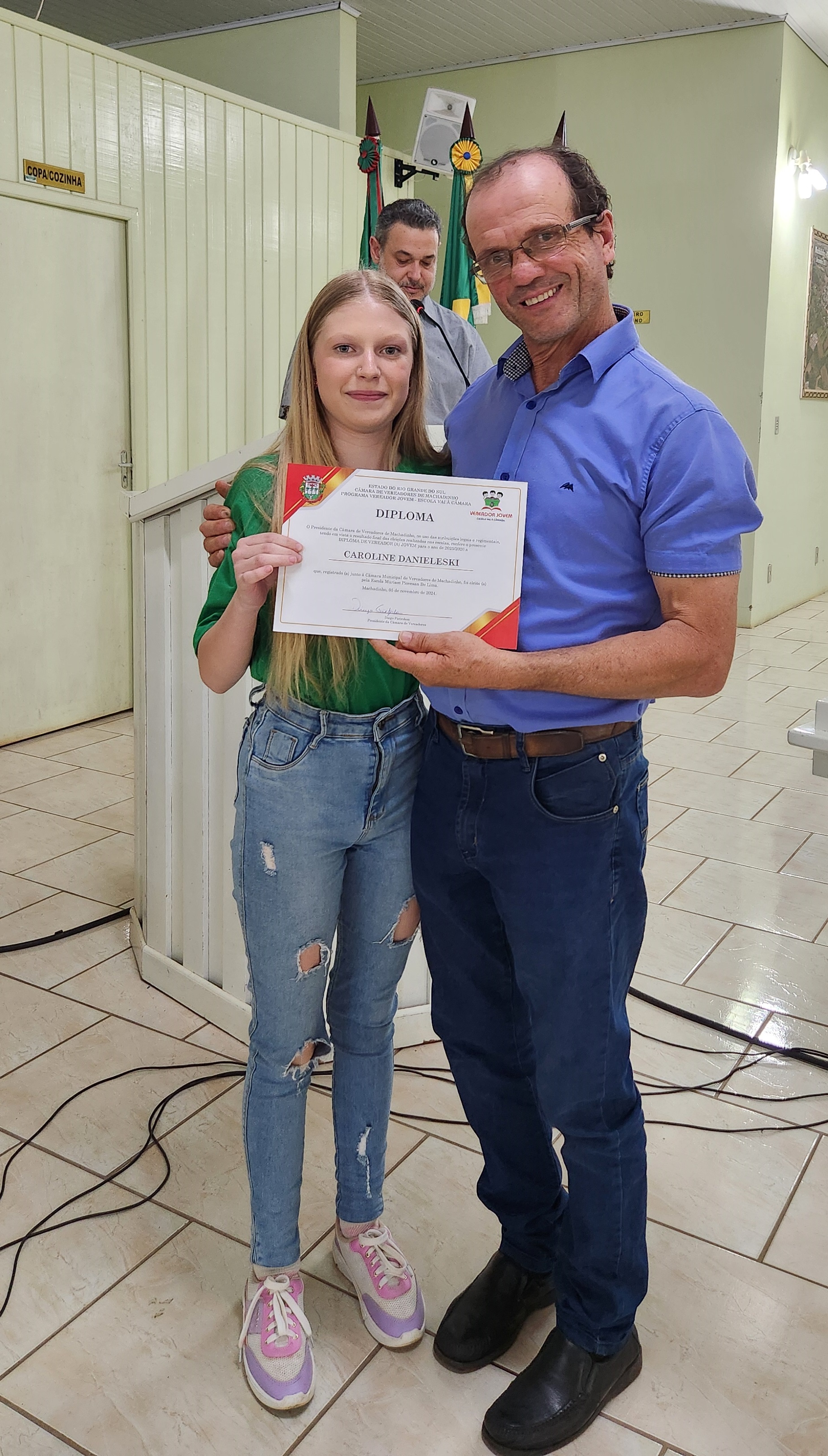 – Caroline Danielewski, foi diplomada pelo vereador Clori de Meneses;