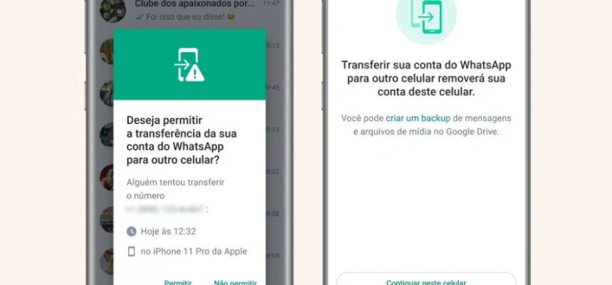 O alerta vai exibir o horário e em qual modelo de celular aconteceu a tentativa de transferência. Além disso, o aplicativo vai explicitar que a transferência remove totalmente a conta do celular antigo. Os usuários, por sua vez, poderão permitir ou não a migração.